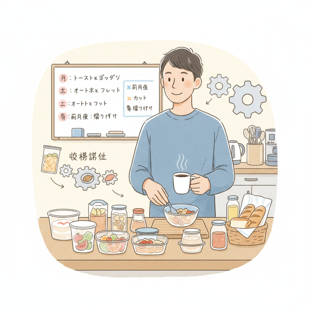 忙しい朝の朝食は、気合いで頑張るよりも、迷わず動ける形を先に作っておくことが続けやすさにつながります。
